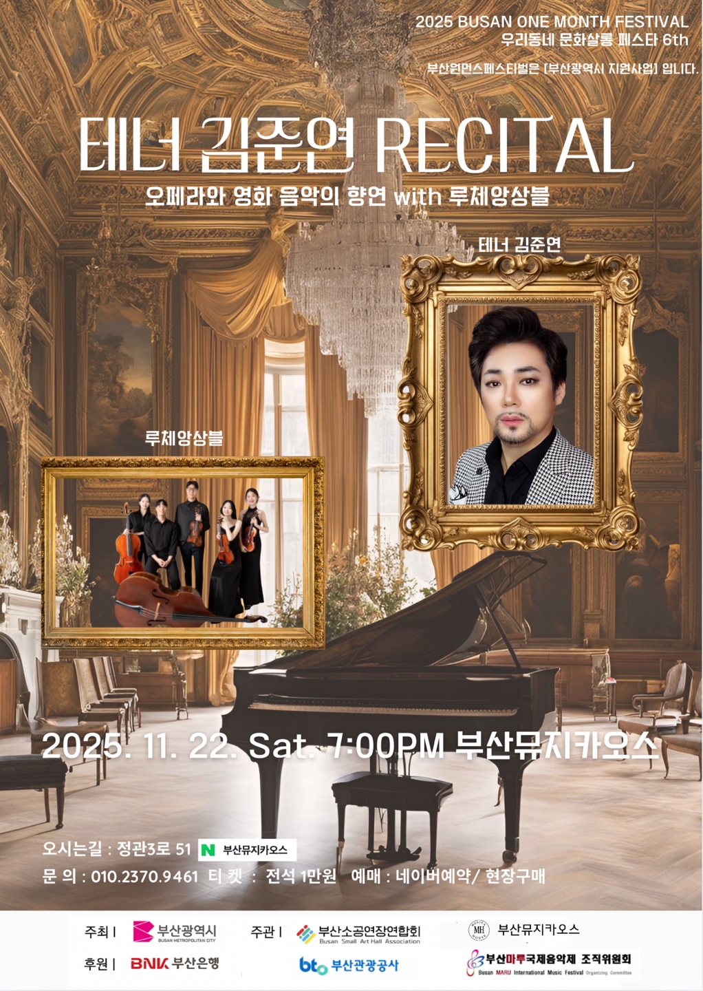 11/22 (토) 19:00 뮤지카오스 - 테너 김준연 RECITAL(오페라와 영화 음악의 향연 with 루체앙상블)